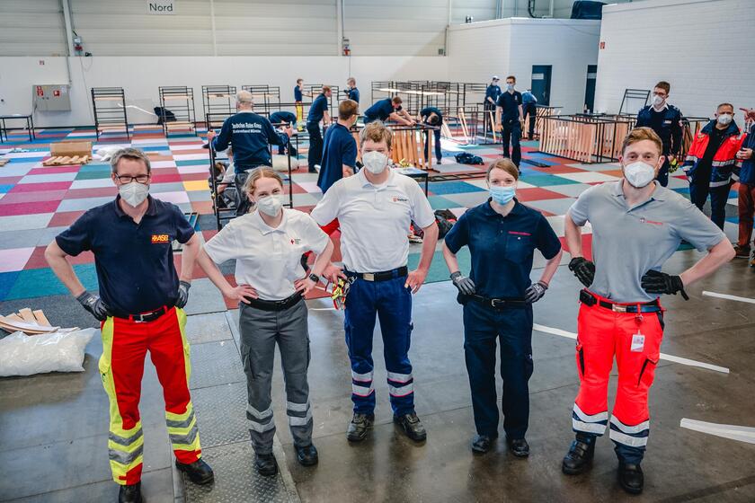 Hilfsorganisationen unterstützen beim Aufbau der Landesnotunterkunft in der Halle Münsterland
