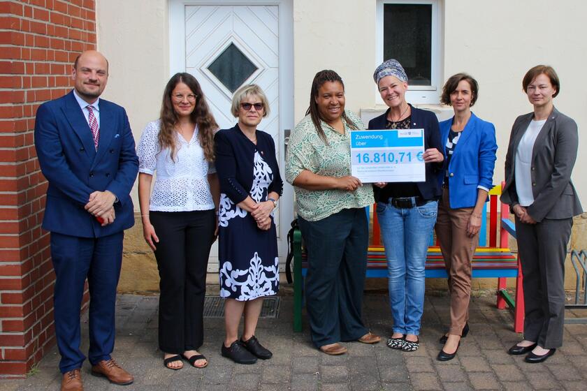 Die Themen Migration und Integration werden uns auch in Zukunft begleiten. Insbesondere die Finanzierung bestehender Projekte muss deshalb gesichert sein. Ministerin Denstädt überreichte symbolisch einen Scheck in Höhe von knapp 17T€ an Anne Störger, um die Arbeit der Johanniter zu unterstützen.