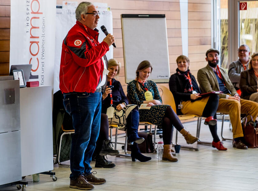 In sogenannten Sessions fanden sich die Teilnehmenden in Kleingruppen zusammen. Die Themen reichten von Gewaltfreier Kommunikation, über Bestattungskultur und islamische Hospizbegleitung bis hin zu Qi Gong oder Akupressur. Hier entstanden Begegnungen zwischen Fachkräften und Laien, als Experten, aber auch ganz persönlich mit den eigenen Geschichten und Erfahrungen. Birthe Möller, Hospizkoordinatorin bei den Johannitern, möchte so den Austausch auf Augenhöhe fördern: "Unser Motto ist: Jeder ist Experte. Wir sind davon überzeugt, dass die Teilnehmenden viele spannende Ideen mitbringen und gemeinsam weiterentwickeln werden. Unser BarCamp bietet den Rahmen dafür."
