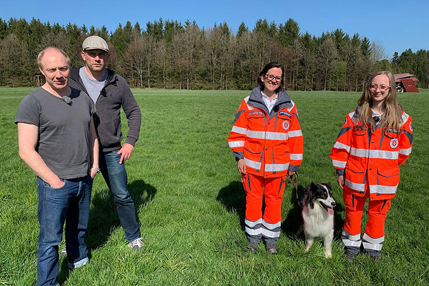 In der BR-Serie "Bezzel & Schwarz - Die Grenzgänger" treffen Sebastian Bezzel und Simon Schwarz, vielen bekannt aus den Eberhofer Krimis interessante Menschen in Bayern. Nun waren sie gemeinsam mit zwei Rettungshundeführerinnen der Johanniter-Rettungshundestaffel Rosenheim im Wald und haben viel über das ehrenamtliche Engagement und die Rettungshundearbeit erfahren. Beinae slebstverständlich, dass sich einer der beiden im UNterholz versteckt und den Geruchssinn der Hunde auf die Probe gestellt hat.