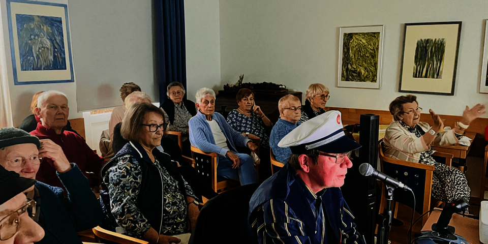 Mit 15 Passagieren und 3-köpfiger Bord Crew war der Johanniter-Airways Flug von Frankfurt nach Düsseldorf ruck zuck ausgebucht. Die virtuelle Flugreise wurde von den Apartmentbewohner/-innen bereits im Februar gebucht, um mit dem ehrenamtlichen Mitarbeiter Joachim Heese und Bewohner Bernd Klosendorf hinter die Kulissen des alltäglichen Flugbetriebs schauen zu können.