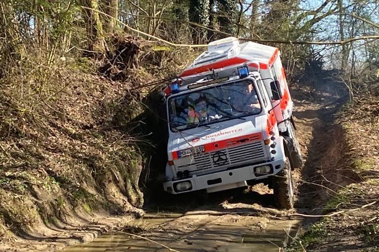 Steigungen, Gefälle, Wasserdurchfahrten und Schlamm – das waren die Herausforderungen für acht Johanniter.