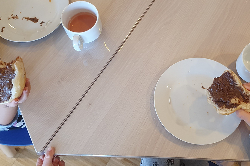 Der Weltkindertag konnte da zu einem sehr guten Anlass genommen werden, um die Döörper Pänz zu überraschen. Zum Frühstück gab es ein wunderbares Potpourri an süßen Sachen, die nach Herzenslust aufs Brötchen geschmiert werden durften.