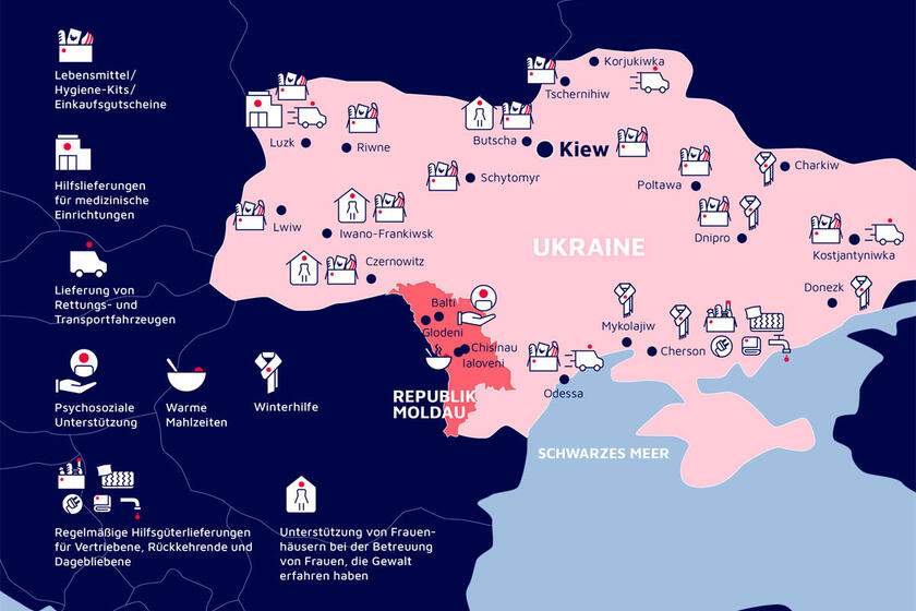 Neben den Menschen sind auch die knappen Ressourcen erschöpft. 14,6 Millionen Menschen – 40 Prozent der Bevölkerung - sind dringend auf Hilfe angewiesen. "Viele Menschen leben ohne zuverlässige Wasser-, Gas- oder Stromversorgung", so McKerrow. Deshalb fahren die Mitarbeitenden der Johanniter-Partner tagtäglich in die Dörfer und Städte entlang der Frontlinie im Süden und Osten, um die Menschen zu unterstützen. Im Gepäck Nahrungsmittel, Hygieneartikel, Batterien, Lampen, Dämmmaterial, Dachschindeln, Feuerholz, Kohle und Decken. "Die Menschen leben unter unvorstellbaren Bedingungen in massiv zerstörten Häusern", so Francke. "Dank der Hilfe der Johanniter konnten wir bereits tausende zerstörte Dächer neu decken und Häuser winterfest machen."