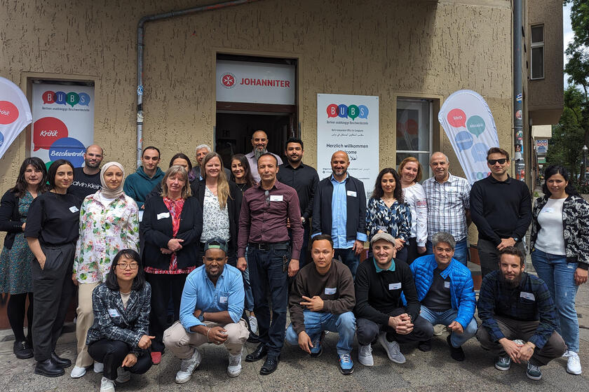 Um ein Vertrauensverhältnis mit den Geflüchteten aufzubauen, ist bei der BuBS in den dreieinhalb Jahren viel Arbeit geleistet worden. Die Meisten der rund 30 Mitarbeitenden der BuBS haben selbst einen Fluchthintergrund und sie sprechen die Sprachen, die Geflüchtete auch in Berlin sprechen. „Gerade dieser Peer-to-Peer-Ansatz ist unsere Stärke“, sagt Maike Caiulo-Prahm. „So können wir die Anliegen der Klientinnen und Klienten in ihrer Muttersprache entgegennehmen und die geflüchteten Menschen davon überzeugen, dass sie sich beschweren können, ohne dass es beispielsweise einen Einfluss auf ihren Asylverfahren hat.“