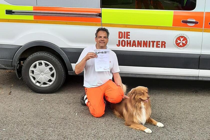 Darunter war auch Daniel Carmagnani und sein fünf Jahre alter Australian Shepherd Rüde Rocco. Alle zwei Jahre müssen die geprüften Teams ihre Einsatzfähigkeit aufs Neue unter Beweis stellen- dies ist dem Kötzer Team wunderbar gelungen. Somit hat die Staffel weiterhin fünf geprüfte Teams, die in den Einsatz gehen, wenn sie gebraucht werden.