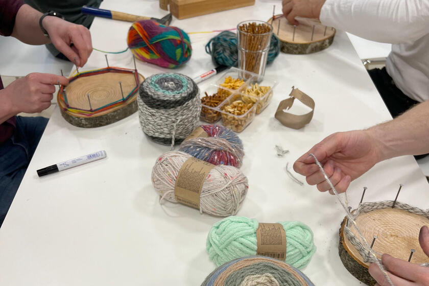 In der Biberbande wurde in dieser Woche gehämmert und gewickelt: Bei einem Nachmittag speziell für die Väter der Biberbanden-Kinder leisteten diese Vorarbeit für den Osterhasen. Aus einer Holzscheibe, Nägeln und Wolle entstanden individuelle Osternester für die kleinen Biber.