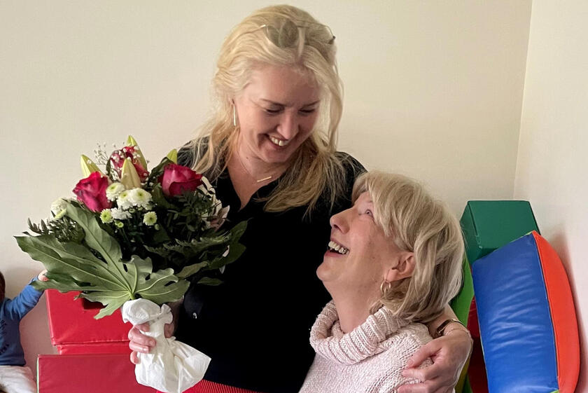 Sie wird fehlen: Kinderinsel-Leiterin Angela Eckschmidt verabschiedet Brigitte Reinwand mit einem Blumengruß.