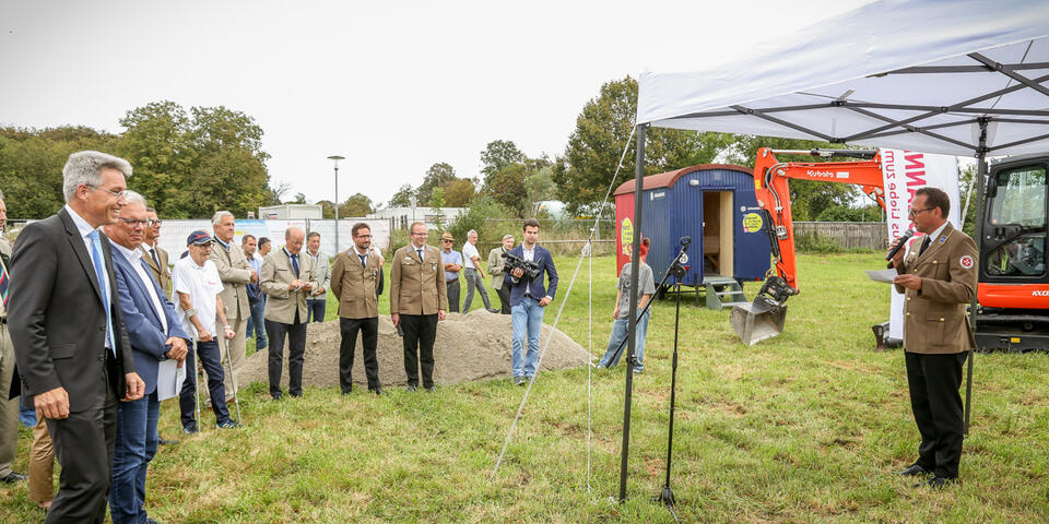 Mit einem symbolischen Spatenstich durch den Rosenheimer Landrat, Wasserburgs Bürgermeister und weiteren Unterstützerinnen und Unterstützern starteten die Johanniter am 13. September nicht nur die Bauphase, sondern vor allem die Spendenkampagne für das Johanniter-Zentrum Oberbayern Südost. Denn um den insgesamt rund 4,8 Millionen Euro teuren Bau bis Ende 2024 vollenden zu können, benötigen die Helferinnen und Helfer rund 3,2 Millionen Euro Spenden.