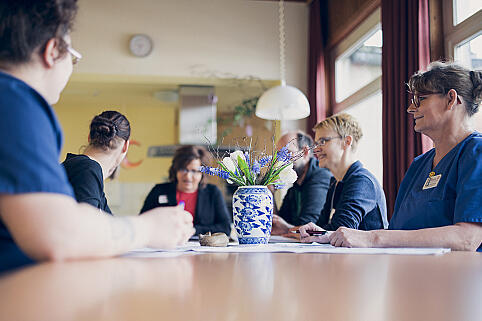 „Flexible Arbeitszeiten sind das A und O. Die Gestaltungsmöglichkeiten richten sich natürlich ein wenig nach dem Beruf. Lassen sich Tätigkeiten in der Verwaltung und im Management grundsätzlich zeitlich flexibler bearbeiten, so ist es in der Pflege notwendig, Schichten zu belegen, um jederzeit eine gute Betreuung unserer Bewohnerinnen und Bewohner gewährleisten zu können. Aber auch hier unterstützen wir unsere Mitarbeitenden, wo wir nur können“, erklärt Julia Richter.