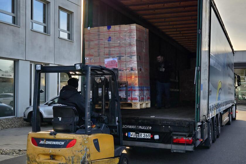 Direkt am allerersten Werktag-Morgen nach Sammelende, am 15. Dezember, hält plötzlich ein 40-Tonner in Ehrang. Der Fahrer hat selbst erst zehn Minuten vorher erfahren, dass er mit seinem eben entladenen Lkw jetzt spontan zehn Europaletten abholen soll: Voll mit jeweils bis zu sechzig der rund zwölf Kilo schweren Johanniter Weihnachtstrucker-Päckchen. Zwischenziel: Der bayerische Sammelpunkt der deutschlandweiten Hilfsaktion. In aller Eile wird die letzte Palette mit – aus Platzmangel im Haus verteilten - Paketen beladen, mit Folie ummantelt. Der ahnungslose Fahrer hat weder Hebebühne noch Gabelstapler dabei. Zum Glück rettet ein Nachbarunternehmen: Getränkehändler W. Eifel stellt spontan Gerätschaften samt Fahrerhelfer. „Das ist der Weihnachtstrucker in Reinkultur“, freut sich Johanniter Regionalvorstand Daniel Bialas: „Hier geht es um das gemeinsame Ziel, etwas Gutes zu tun und jeder trägt, wie er kann, dazu bei“. Neben den gemeinsam oder einzeln gepackten und abgegebenen Paketen, haben auch viele Spender wieder virtuell mitgepackt: Online per Klick-Gabe, womit dann vor Ort in Supermärkten der Zielländer die Pakete gefüllt werden - ohne den „Transport-Kraftakt“.