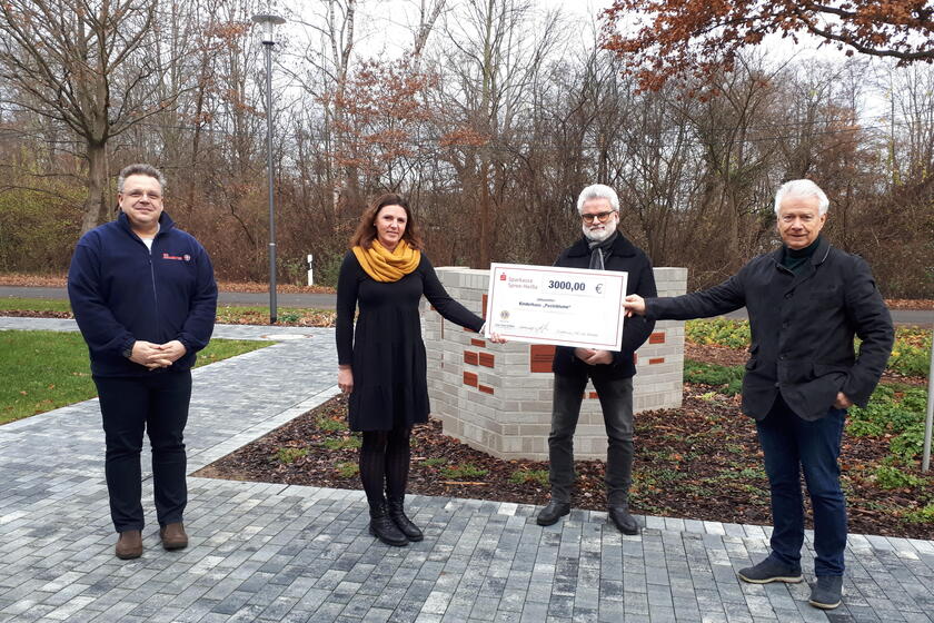 Wir freuen uns sehr über die lange Verbundenheit des Lions Clubs Cottbus mit unserem Herzensprojekt Kinderhaus quasi vom ersten Spatenstich an. Heute überbrachten Clubpräsident Hagen Strese und Clubsekretär Wolfgang Wollgam einen symbolischen Spendenscheck, den Andreas Berger-Winkler und Daniela Konzack für das Kinderhaus direkt vor der Spendenmauer am Kinderhaus entgegennahmen. Der Lions Club Cottbus hatte bereits in der Bauphase des Kinderhauses für einen Spendenstein gespendet und freute sich jetzt, das fertiggestellte Projekt erneut unterstützen und sich dazu vor Ort einen Eindruck verschaffen zu können.