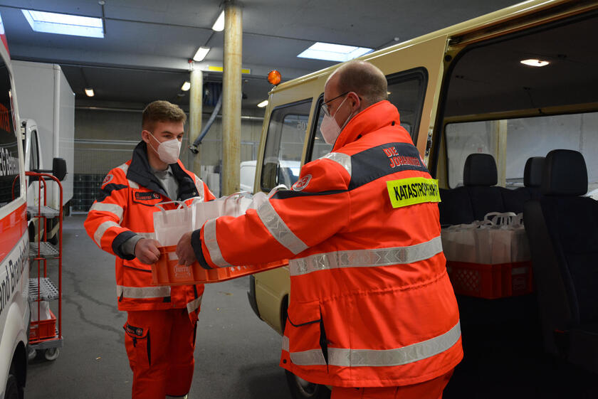 Dafür übernehmen die Johanniter im Auftrag der Stadt Brandenburg die Verpflegungstransporte von der Küche des Universitätsklinikums in die Notunterkünfte. Über den gesamten Tag verteilt liefern Ehrenamtliche und Hauptamtliche Johanniter drei Mahlzeiten (Frühstück, Mittag und Abendessen) aus.