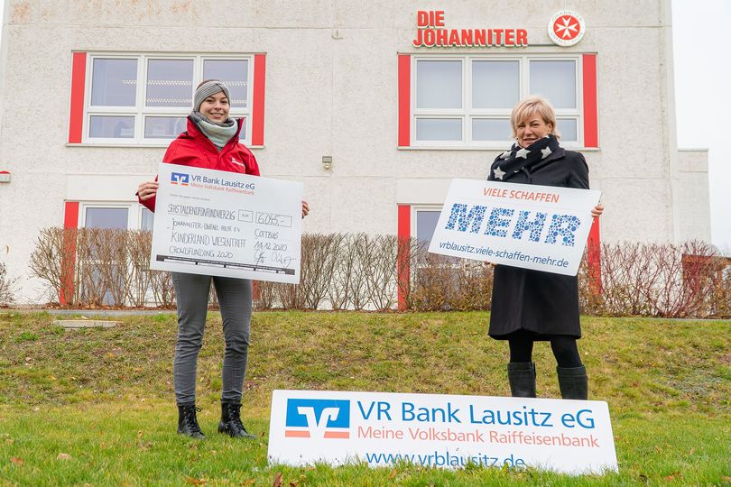Der Bau von einem lang ersehnten Kletterfelsen kann starten. Gemeinsam mit der VR Bank Lausitz eG und zahlreichen Spendern ist das möglich geworden und der Betrag von Euro ist zusammengekommen. Den Scheck haben Elisa Buchwald aus dem Johanniter Fundraising Team und die KITA Fachbereichsleitung Angelika Poppe entgegen genommen. Bald ist Klettern angesagt, vielleicht probieren wir den Felsen ja auch mal aus.Wir sagen nochmals herzlichen Dank!