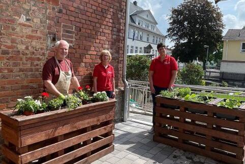 Großen-Buseck ▪ Kürzlich stattete Herr Volk von der Busecker Generationswerkstatt der Tagespflege einen Überraschungs-Besuch ab und kam nicht mit leeren Händen: In die im vorigen Jahr gewerkelten Holz-Hochbeete pflanzte er verschiedene Kräuter, Sal