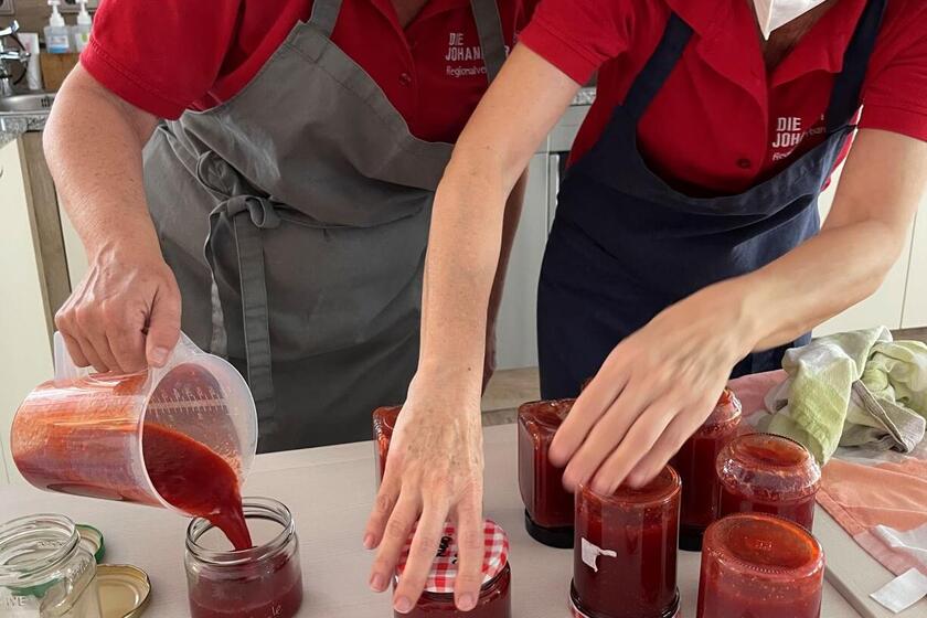 Wie immer gibt es dazu passend Gespräche über die Ernte, das Marmeladekochen und Gedächtnistraining zum Thema Früchte im Allgemeinen und Erdbeeren im Besonderen. Alles in allem eine genussvolle Aktion, bei der man am liebsten auch Gast wäre!