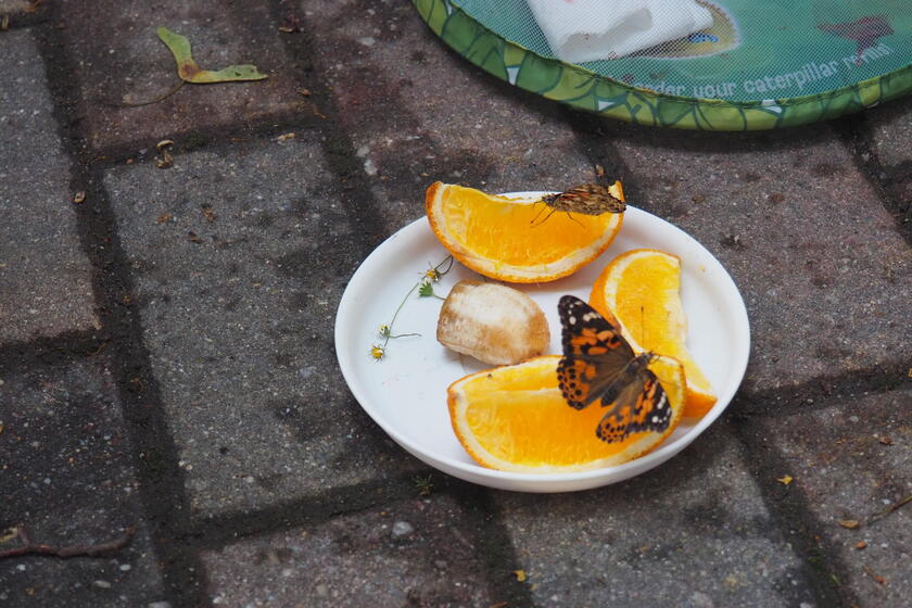 Es war interessant zu sehen, wie diese kleinen Tiere jeden Tag größer und aktiver wurden. Schon nach zehn Tagen hingen die Raupen am Deckel des Bechers und waren zur Verpuppung bereit. Kurz danach wurden die „Puppen“ in ein Schmetterlingsnetz versetzt. Alle waren ganz fasziniert davon und waren gespannt, was als nächstes passiert. Nur wenige Tage später, am 20. Juni 2023, schlüpfte der erste Schmetterling und auch die anderen ließen nicht lange auf sich warten. Mit frischem Obst und Zuckerwasser hatten die Kinder noch einige Zeit die Schmetterlinge zu beobachten, bevor sie in die Freiheit entlassen wurden.