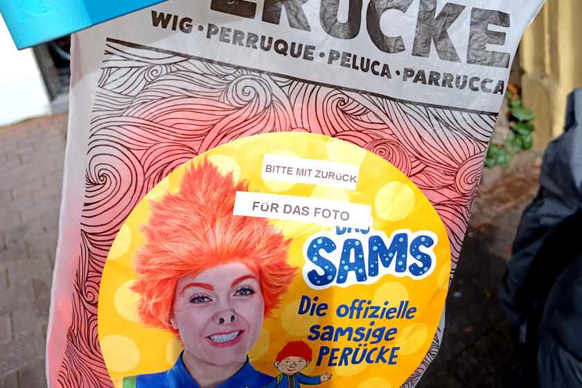 Passender Schlusspunkt war das Sams-Haus in der Judenstraße, in dem das Sams im Film zu Hause ist. Dort wurden lustige Erinnerungsfotos mit der Sams-Perücke und aufgemalten blauen Wunschpunkte geschossen.