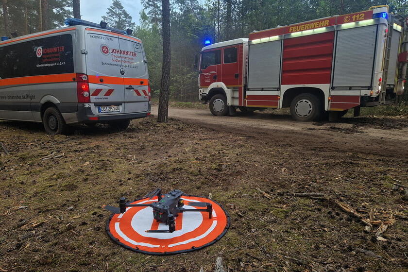 Heute Abend wurde die SEG F.L.I.G.H.T. der Johanniter mit ihren Drohnen zu einem Waldbrand bei Preschen alarmiert. Auf einer Fläche von mehreren Hektar brannte der Waldboden – eine anspruchsvolle Lage für die Einsatzkräfte vor Ort.