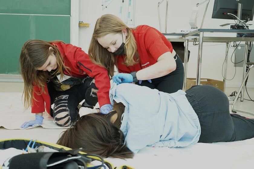 180 SchulsanitäterInnen und Helfende trainieren vom 13. bis 15. Mai in Leipzig ihre Skills in Erster Hilfe. Am Evangelischen Schulzentrum stehen verschiedene Rettungsszenarien aus dem Schulalltag auf dem Programm: Eine Schülerin verletzt sich im Werkunterricht, ein Freund kollabiert in der Sportstunde beim Ausdauerlauf, im Chemieunterricht kommt es zu einer Vergiftung.