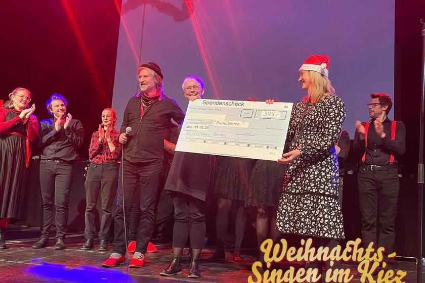 Auf seinen Wunsch hin gingen 2 Euro pro Eintrittskarte an unser Kinderhaus - und er selbst legte auch noch was oben drauf. Schließlich spendete auch der Chor der Berliner Stage Company einen Teil seines Honorars, sodass insgesamt 1.000 Euro als Spenden zusammen kamen. Wir danken von ganzem Herzen allen Beteiligten für diese einmalige Aktion, allen voran Dirk Zöllner und der Organisatorin des Ganzen, Yvonne Klehr. Frohe Weihnachten wünschen euch die kleinen und großen Kinderhaus-Gäste! Das war einfach wunderbar mit euch....
