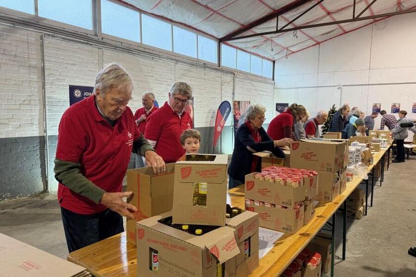 Am Sonnabend startete der Johanniter-Weihnachtstrucker 2025, auf die ersten Pakete musste nicht lange gewartet werden. Schon am Vormittag trafen sich in einer Halle in Hannover-Hainholz mehr als 30 Johanniter zu einer gemeinsamen Aktion. Eine Packstraße war aufgebaut worden mit Mehl, Keksen, Seife, Zahnbürsten... In Windeseile rutschten die Pakete von Station zu Station, vorbei an Kindern, Erwachsenen und altgedienten Johannitern, bis zum Schluss 108 Pakete verschlossen und auf Paletten gestapelt für den Abtransport bereitstanden. Die Johanniter-Hilfsgemeinschaft Hannover (JHG) hatte den Wareneinkauf finanziert, aus dem Vorstand waren Christoph Humberg und Raoul Dittmer mit ihren Familien zum Packen gekommen. Beide sagten: "Anderen Menschen geht es nicht so gut wie uns, wir wollen ein Beitrag leisten. Jedes dieser Pakete ist mehr als ein Geschenk, es ist auch ein Zeichen der Anteilnahme und Unterstützung." Ziel des bundesweiten Weihnachtstrucker-Projektes ist es, Päckchen mit Grundnahrungsmitteln, Hygieneartikeln und einem kleinen Kinderspielzeug zu bedürftigen Menschen nach Osteuropa zu bringen. Die Pakete aus Niedersachsen und Bremen sind hauptsächlich für die Ukraine gedacht.