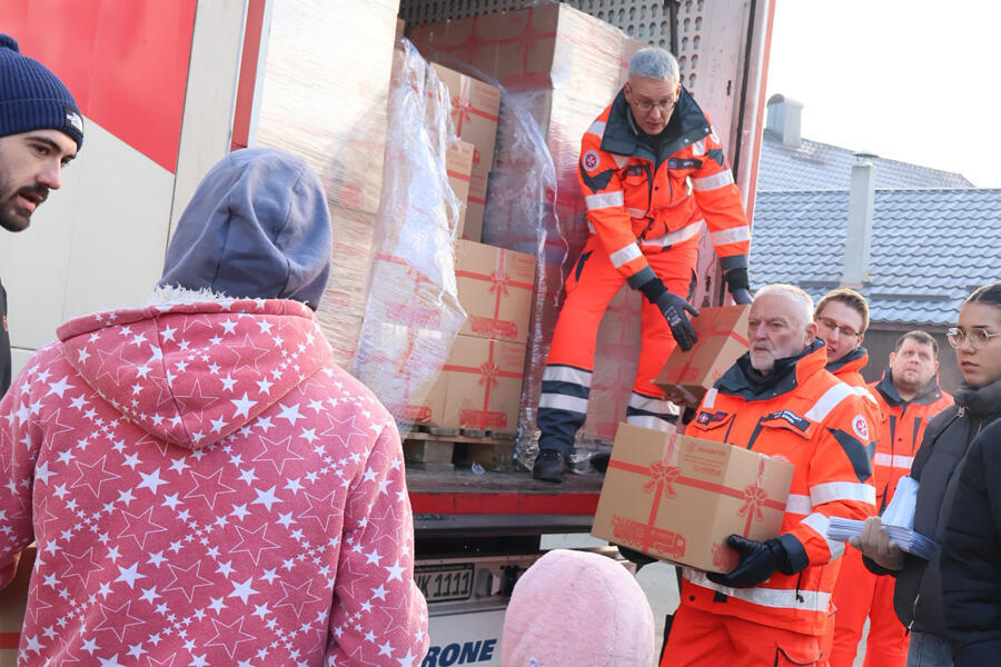 Johanniter freuen sich über mehr als 78.000 Päckchen für den Weihnachtstrucker 2024, die an hilfsbedürftige Menschen in Südosteuropa und Deutschland verteilt wurden.