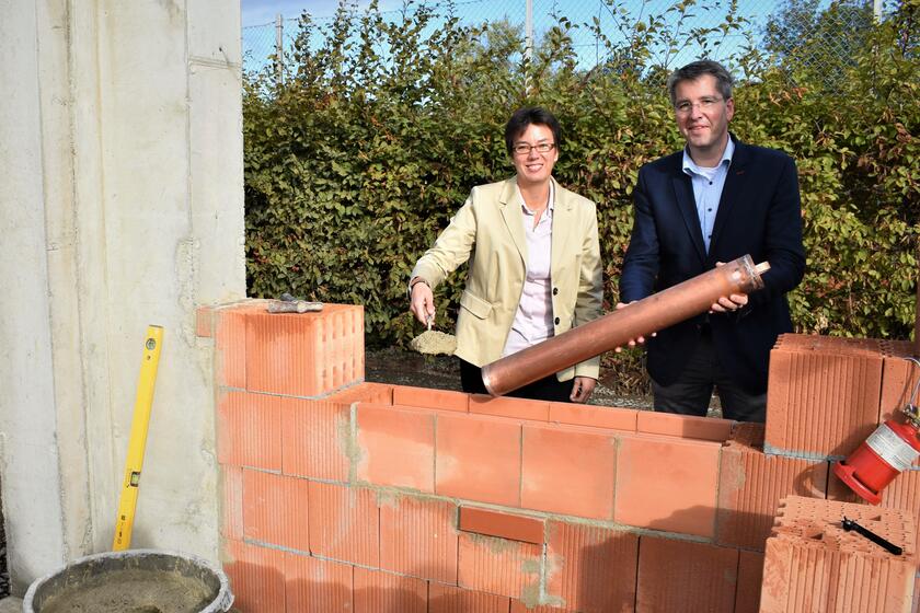 Der Oberbürgermeister ließ es sich nicht nehmen, gemeinsam mit Samantha Brinkwirth und dem Architekten Axel Blume eine Zeitkapsel, eine Dokumentenrolle aus Kupfer, in der Mauer verschwinden zu lassen. Der Inhalt: ein Johanniter-Gebetsbuch, die aktuelle Ausgabe der „Goslarschen Zeitung“ sowie eine Johanniter-Schutzmaske.