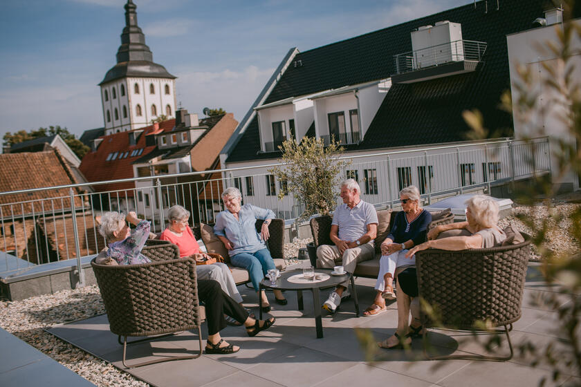 Franziska Briewig sitzt im Strandkorb und lauscht den wohltuenden Klängen, die aus einem portablen Radio tönen. „Das Gerät hat mir mein Sohn geschenkt“, sagt die 87-Jährige. „Seitdem kann ich im Strandkorb Musik hören. Hier ist mein absoluter Lieblingsplatz. Wenn die Sonne scheint, weht immer auch eine angenehm frische Brise.“ Der Strandkorb steht jedoch nicht am Meer. Briewig genießt die Nachmittagssonne im Herzen von Lippstadt – auf der Dachterrasse des Lippe-Carré.