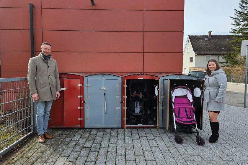 Zudem freuen sich das Team und die Eltern über die Installation von Kinderwagenboxen vor dem Haus. Diese vier wasserfesten Boxen bieten nicht nur einen wetterfesten Ort zur Aufbewahrung von Kinderwagen, sondern schaffen Platz im Eingangsbereich und sind auch abschließbar. Landrat Alex Eder besuchte persönlich die Einrichtung, um sich von dem praktischen Nutzen dieser Anschaffung zu überzeugen.
