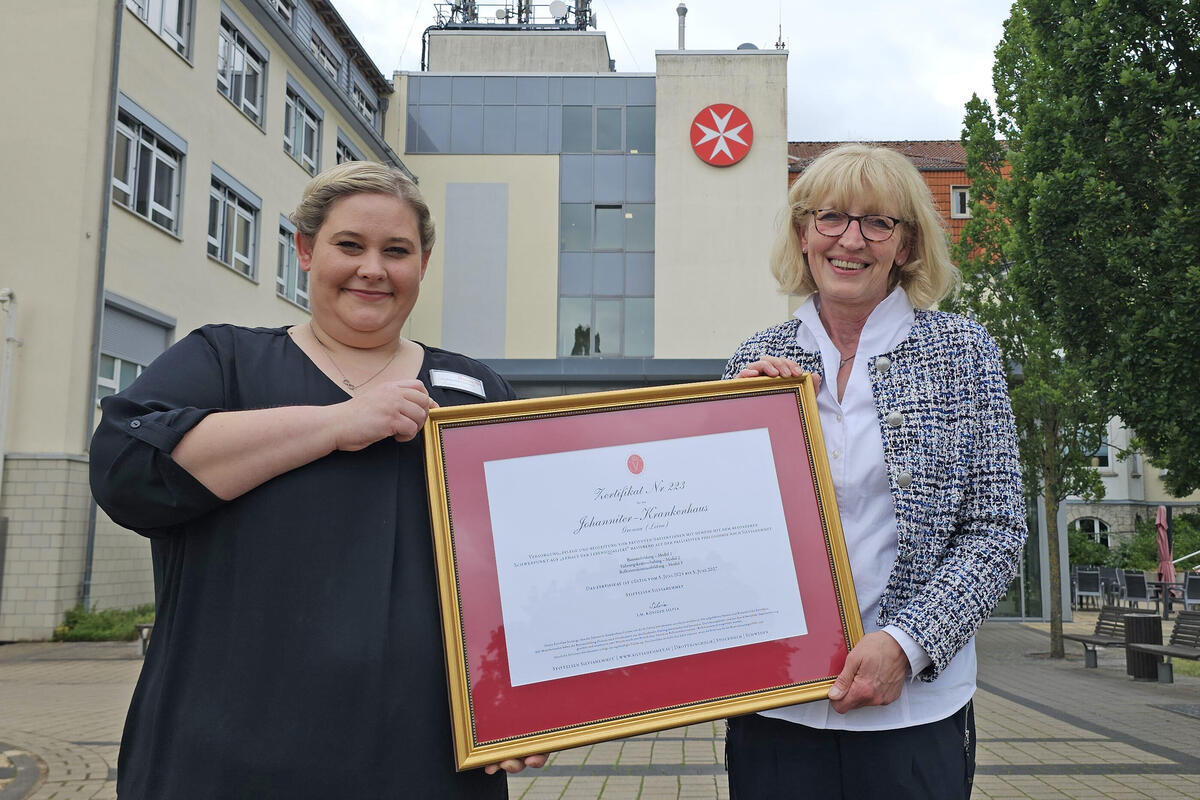 Dr. Wilhelmina Hofmann, Geschäftsführerin der Silviahemmet-Stiftung, sowie Ulrika Granér, grad. „Silvia-Schwester” und zuständig für die internationalen Kontakte, waren eigens für die Zertifikatserteilung aus Stockholm angereist. Gemeinsam mit Dr. Ursula Sottong, Dozentin der Silviahemmet-Stiftung, die in Gronau den Vorbereitungsprozess begleitete, überreichten sie vor 55 geladenen Gästen, darunter Vertreterinnen und Vertreter des Johanniterordens, der Politik sowie des Kuratoriums und des Fördervereins, zunächst der gesamten Klinik und im Anschluss allen Fachbereichen und -abteilungen die offiziellen Zertifikate. Einen Tag später wurde das gemeinsam Erreichte auch in großer Runde mit allen Mitarbeitenden bei einem Grillfest gefeiert.