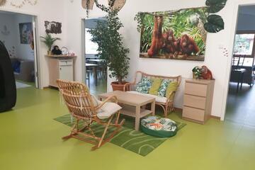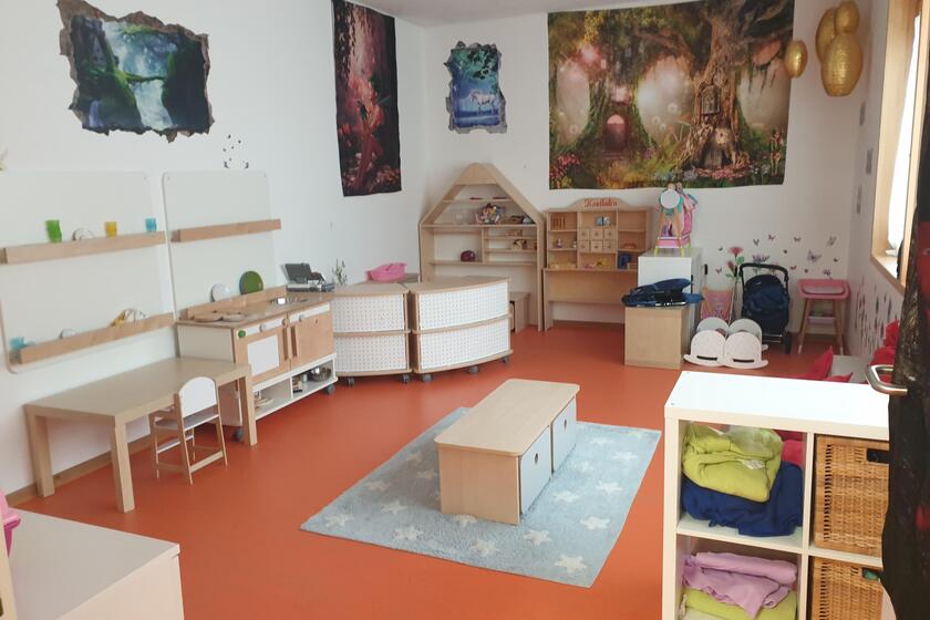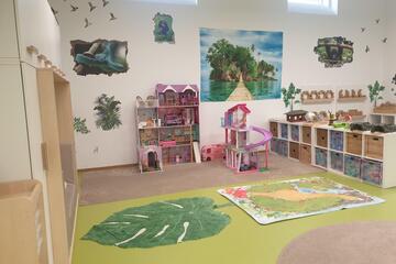 Jeder Raum ist kindgerecht und individuell eingerichtet und in verschiedene Bildungsbereiche unterteilt. Es bestehen sogenannte Themenräume wie beispielsweise Unterwasserwelt, Wildtiere, Dschungel etc. Somit bietet jeder Raum Möglichkeiten für selbstbildende Gruppen im Freispiel und eine Atmosphäre der Geborgenheit durch Rückzugsmöglichkeiten.