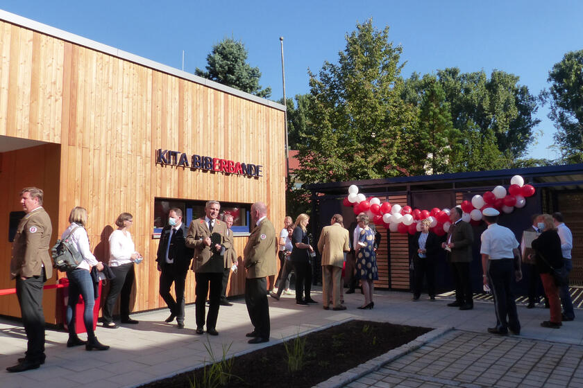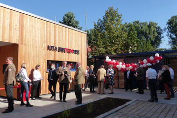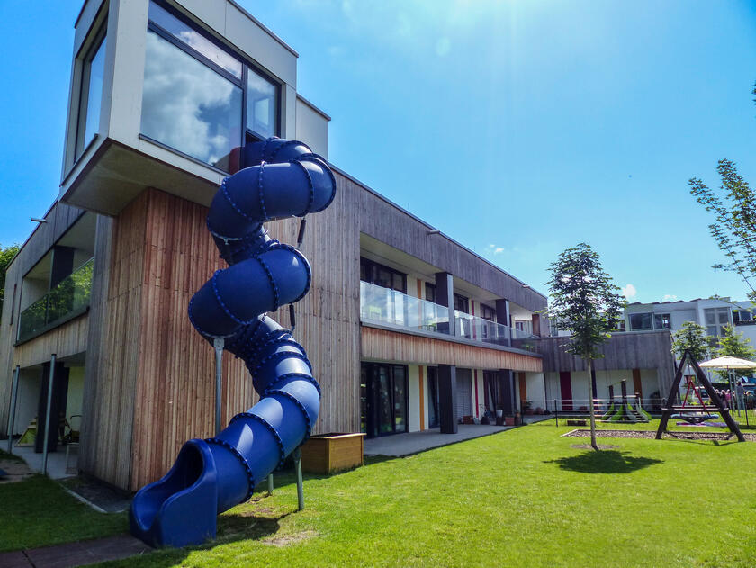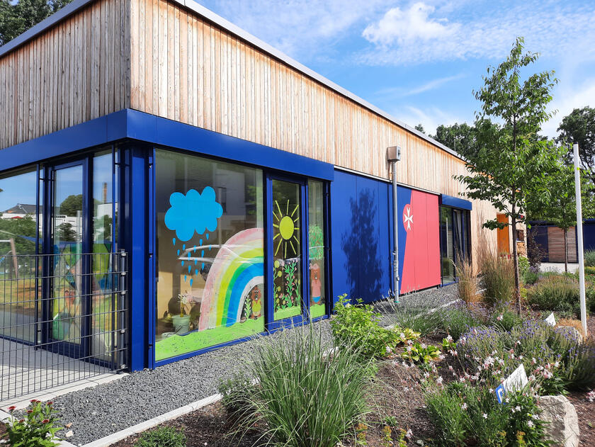 Im September 2021 wurde unsere neue Kindertagesstätte in der Dr.-Ida-Noddack-Straße in Bamberg eröffnet. Die Einrichtung – gelegen zwischen dem Wohnquartier Mayersche Gärtnerei und dem ERBA-Gelände – bietet 30 Krippen- und 56 Kindergartenkindern in je zwei Gruppen Platz.