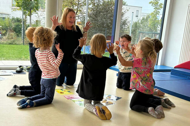 Durch die Lage direkt angrenzend an das ehemalige Gelände der Landesgartenschau können sich Kinder und Eltern auf ein besonders abwechslungsreiches Spielumfeld freuen, in dem die Kinder die Natur mit allen Sinnen erfahren können.