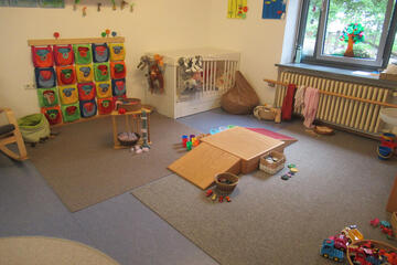 Unsere Räume wurden speziell auf die Bedürfnisse für Kinder unter drei Jahren konzipiert. Dadurch ermöglichen wir Ihrem Kind vielfältige Erfahrungen mit Gleichaltrigen zu sammeln, unterstützen es in seiner zunehmenden alltäglichen Selbständigkeit und stärken es in seinen individuellen Fähigkeiten.