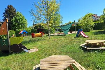 - Nachmittags: Erneute Öffnung der Themenräume, Freispiel, Vesper, Zeit im Garten