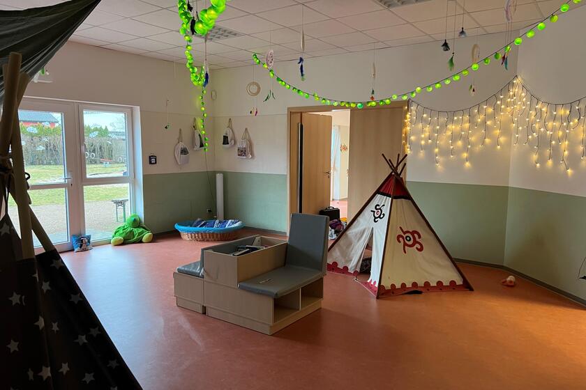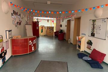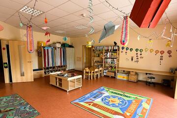 Unsere Johanniter-Kita "Zwergenstube" bietet Platz für 110 Kinder in zwei Bereichen: dem Nestbereich für die Kleinsten und dem Elementarbereich für die größeren Kinder. Im Nestbereich betreuen wir bis zu 30 Kinder ab einem Jahr, während im Elementarbereich 80 Kinder bis zum Schuleintritt Raum zum Wachsen finden.