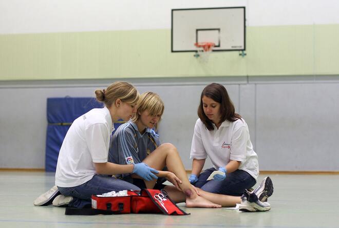 Schulsanitäterinnen und -sanitäter versorgen in Notfällen andere Schülerinnen und Schüler sowie Lehrkräfte. Die Johanniter übernehmen die Ausbildung und Organisation von Schulsanitätsdiensten.