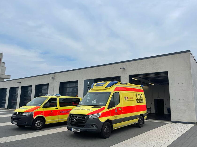 Auf der Rettungswache Schönefeld wird rund um die Uhr ein Rettungstransportwagen (RTW) und ein Notarzteinsatzfahrzeug (NEF) vorgehalten.