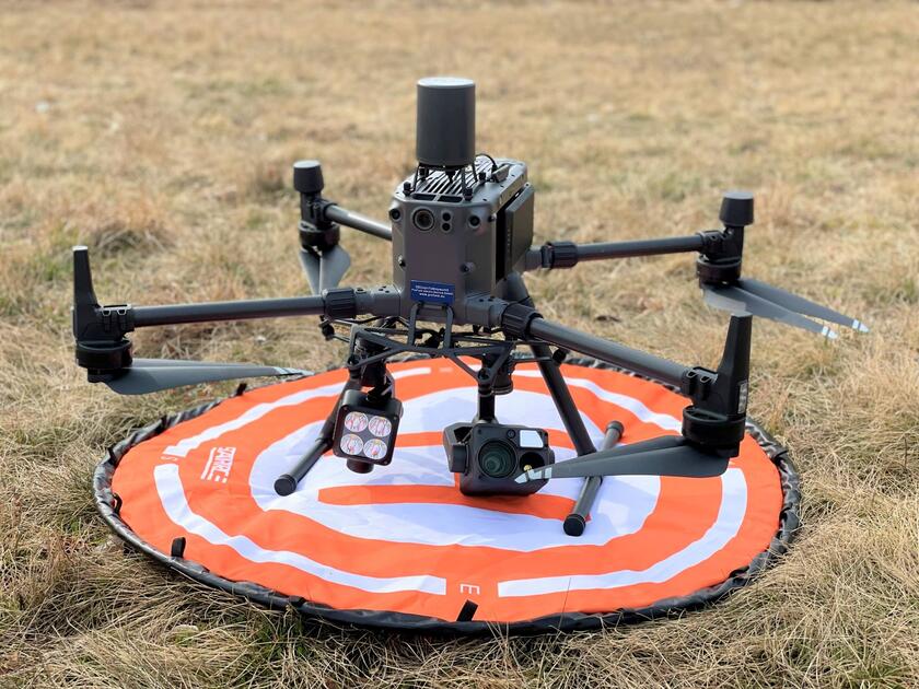 - • BOS-Drohne mit Hybrid-Kamera (Wärmebild, Zoomkamera, Weitwinkel, Laserentfernungsmesser)