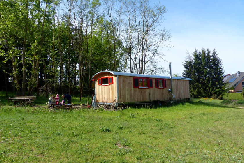Morgens treffen sich die Kinder an unserem Bauwagen direkt am Waldrand. Den Tag beginnen wir mit einem Morgenkreis. Gemeinsam mit den Kindern entscheiden wir dann, wie und wo wir den Tag verbringen. Auch das mitgebrachte Frühstück und Mittagessen findet im Freien statt.