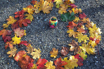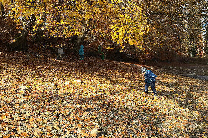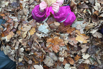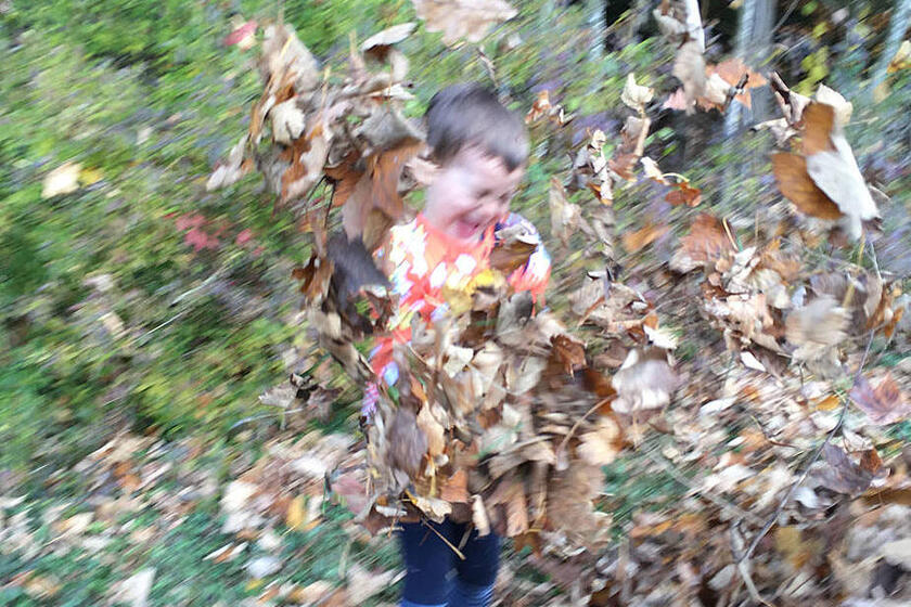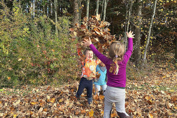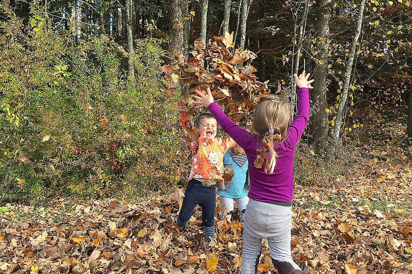 Im Herbst geht eine große Veränderung mit der Natur vor sich. Diese können wir in unserem Waldkindergarten besonders gut beobachten. Täglich verfolgen wir, wie die Blätter nach und nach ihre Farbe ändern und schließlich zu Boden fallen. Die Blätter und Baumfrüchte bieten eine große Vielfalt an Spiel- und Gestaltungsmöglichkeit. Im großen Blätterhaufen kann Verstecken gespielt werden, aus Blättern und Stöcken werden herrlich bunte Girlanden, aus Kastanien und Eicheln entstehen schöne Ketten und unser Barfuß- und Fühlpfad kann mit verschiedenen selbst gesammelten herbstlichen Materialien, wie zum Beispiel Kastanien, Bucheckern, Eicheln und Maiskörnern, befüllt werden.