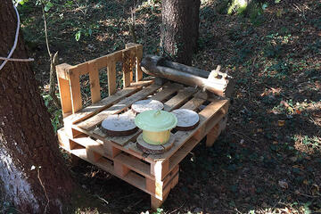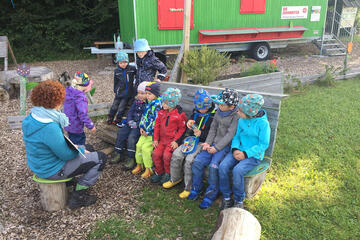 Unsere geräumigen, beheizbaren Bauwagen bieten uns nicht nur Unterschlupf an ungemütlichen Tagen, sondern auch vielfältige Spiel- und Beschäftigungsmaterialien, um der Natur mit allen anderen Sinnen auf die Spur zu kommen. Die Kinder finden bei uns z.B. Bastelutensilien, Vorlese-, Bilder- und Bestimmungsbücher, Lupen und Ferngläser sowie Sägen und Bohrer für die Bearbeitung von Naturmaterialien. Außerdem hat im Bauwagen jedes Kind seinen eigenen Platz, um Wechselkleidung trocken aufbewahren zu können.