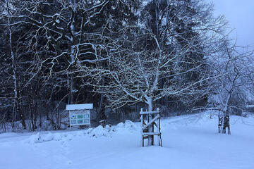 Natürlich treffen wir uns auch im Winter an unseren Bauwagen! Dick eingepackt gibt es auch zur kalten Jahreszeit einiges zu entdecken: wie hoch liegt der Schnee? Ist das Eis auf der Pfütze dick genug, damit wir darauf gehen können? Was machen die Tiere im Winter und wie können wir den Vögeln helfen, die hier überwintern?