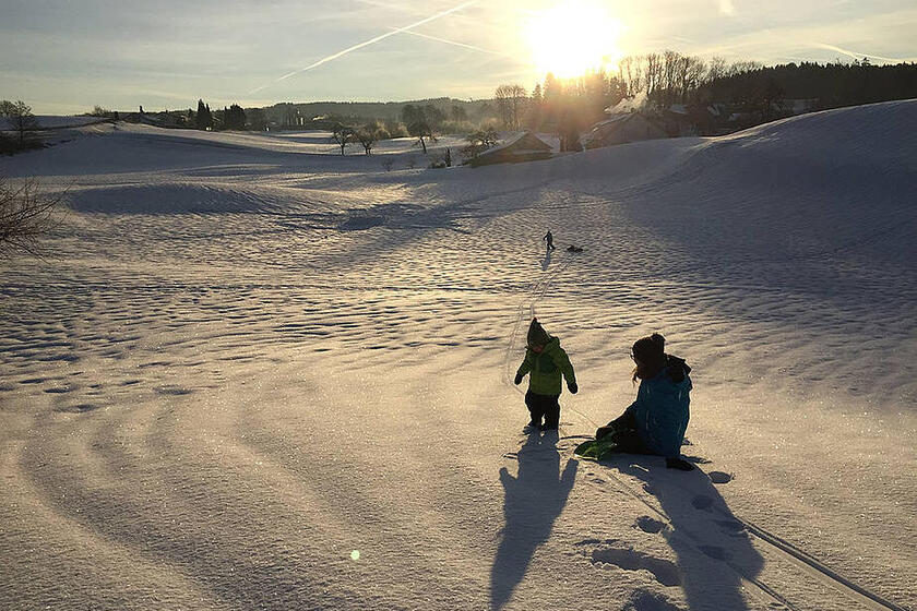 Außerdem laden die vielen Hügel rund um unseren Bauwagenplatz zum Schlittenfahren ein.