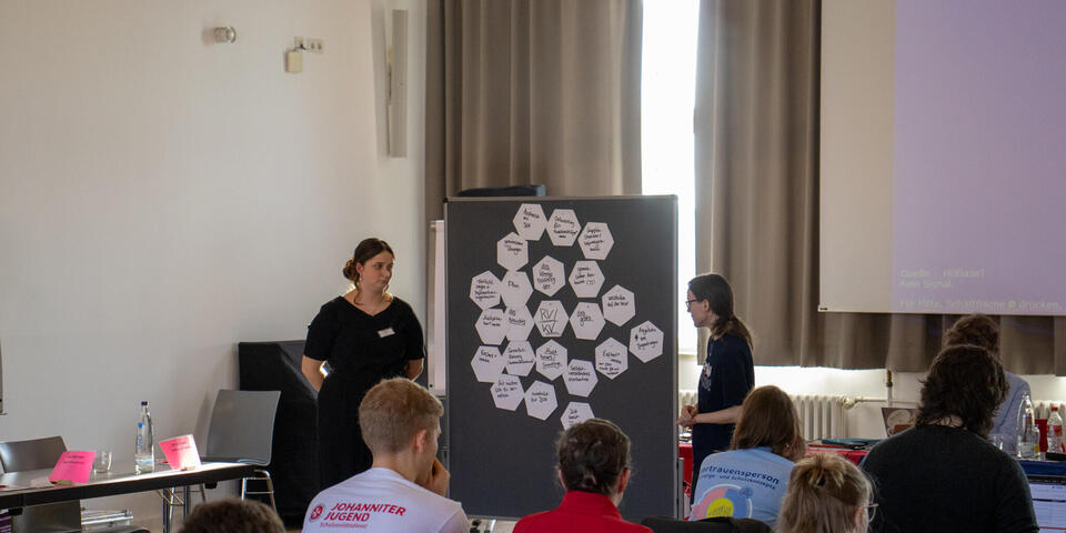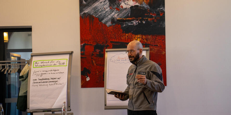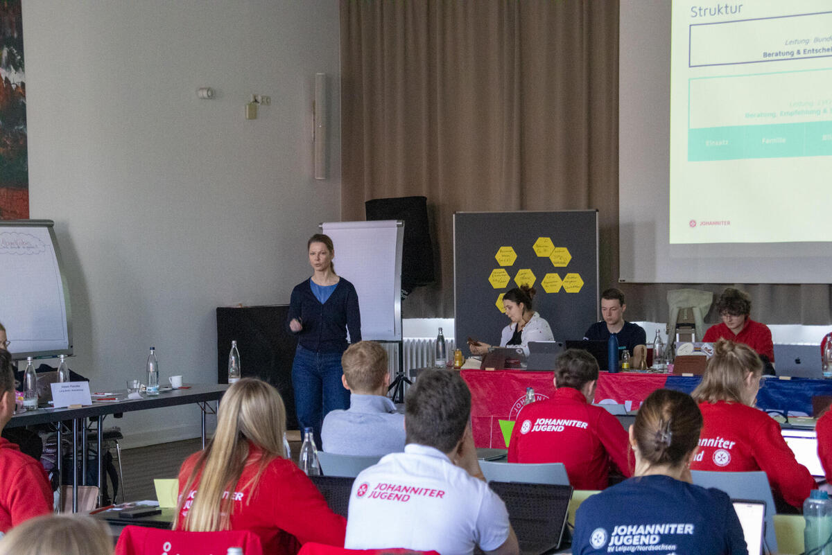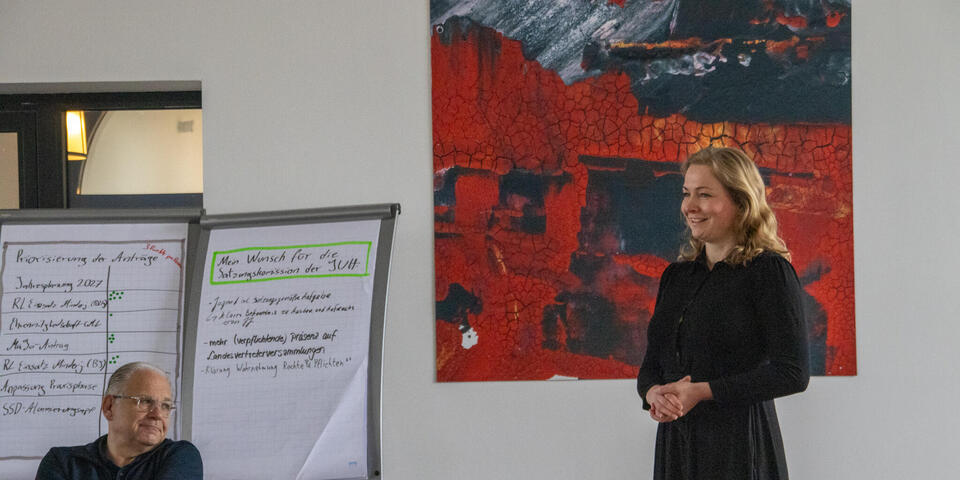 Nach der Mittagspause ging es mit dem Schwerpunktthema "Zivile Verteidigung " weiter. Bereits im Vorfeld hatten die Landesjugendleitungen und die Fachausschüsse ein paar Leitfragen zur Vorbereitung bekommen, durch welche sie die Priorität des Themas, sowie mögliche Handlungsfelder aus ihrerer Sicht vorstellen sollten. Nach der Vorstellung der Antworten ging es in Kleingruppen weiter, um darüber zu sprechen, was es zu dem Thema von welcher Verbandsebene braucht. Nach der Vorstellungen der Ergebnisse wurde über das weitere Vorgehen bis zur nächsten Bundesjugendversammlung diskutiert und vereinbart. Dazu werden wir euch hier bei 4juh in den nächsten Wochen informieren. Anschließend stand die Diskussion der Anträge, die an die Bundesjugendversammlung gerichtet wurden, an. Näheres zu den Anträgen findet ihr unten im Artikel.