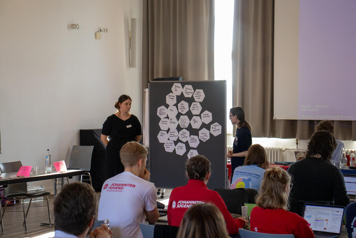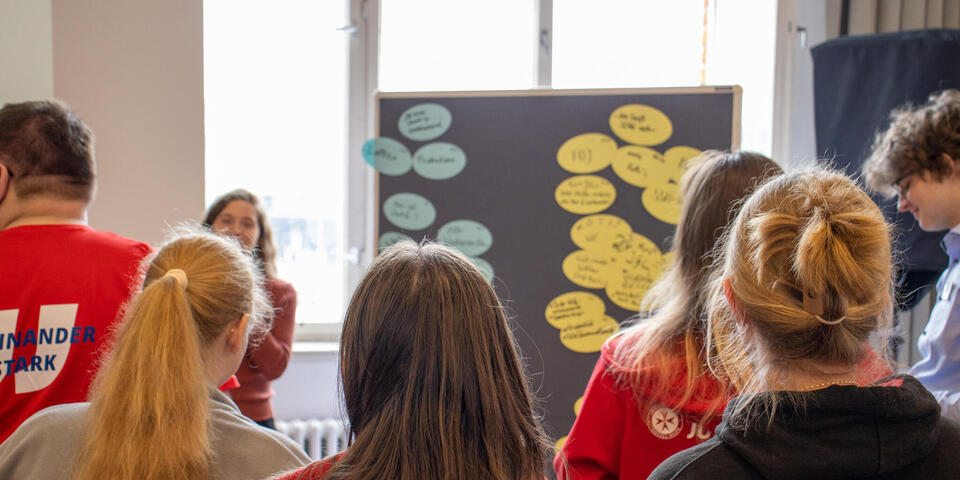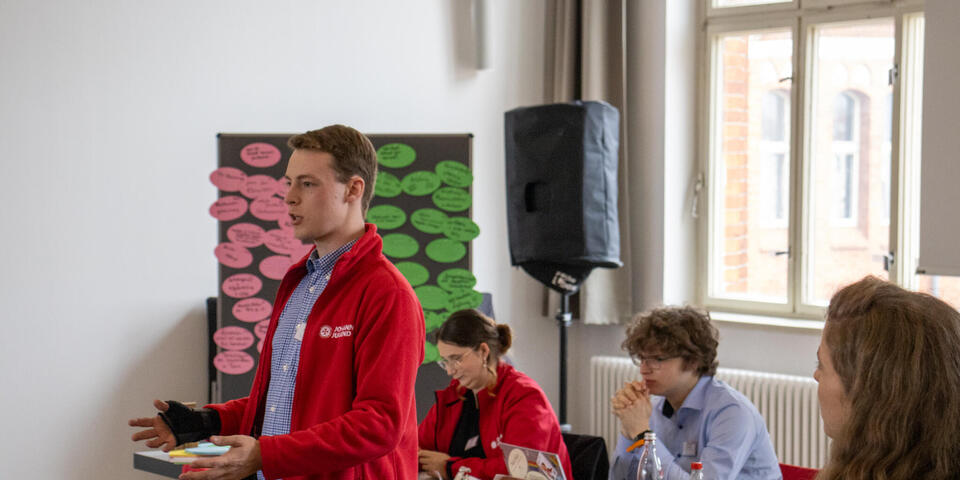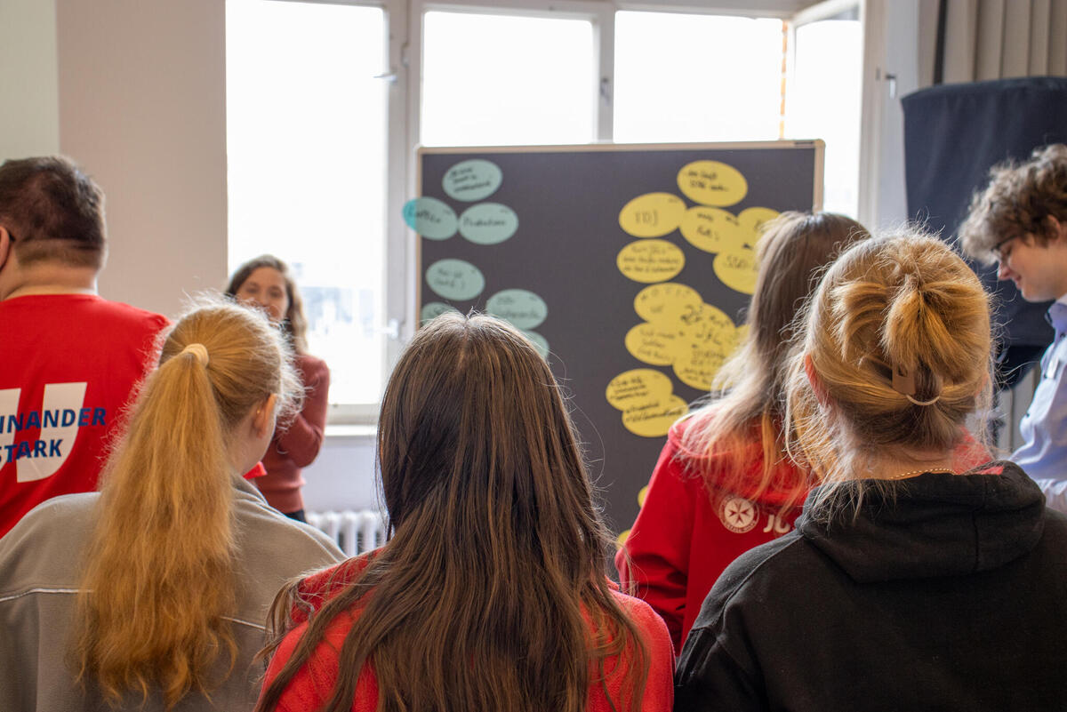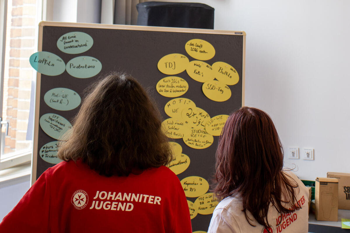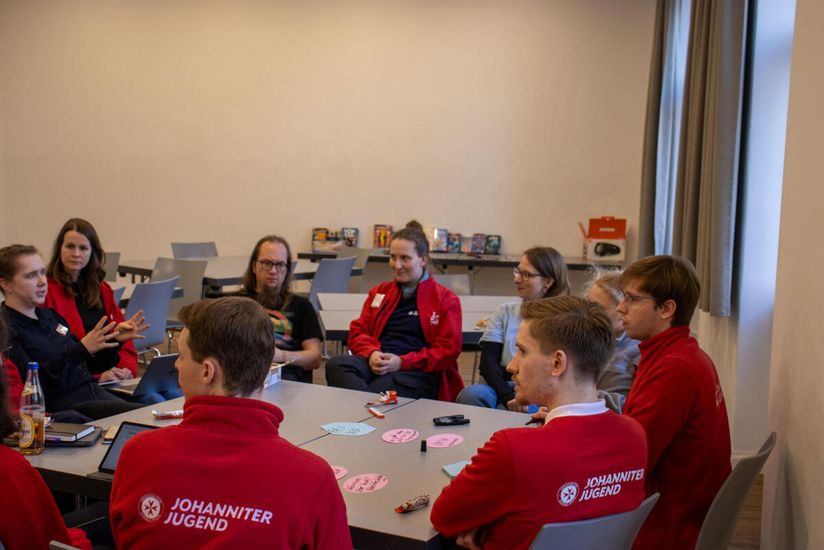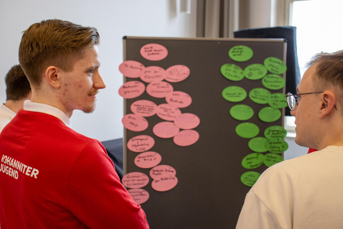 In Form eines Gallery Walks fanden anschließend die Berichte der Landesjugendleitungen statt, bei denen sie vorstellten, was gut läuft, wo es gerade hakt, was 2026 noch ansteht und was der "All Time Favorit" im Verband ist. Anschließend wurden im gemeinsamen Austausch ein paar Highlights, wie der sächsische Zukunftstag oder das SSD-Wochenende in Baden-Württemberg gemeinsam mit der Malteser-Jugend hervorgehoben. Dann berichteten Luca und Margarethe über den aktuellen Planungsstand vom diesjährigen Bundespfingstzeltlager und machten Werbung für die Anmeldung, die seit einigen Wochen möglich ist - hier findet ihr alle Infos dazu.
