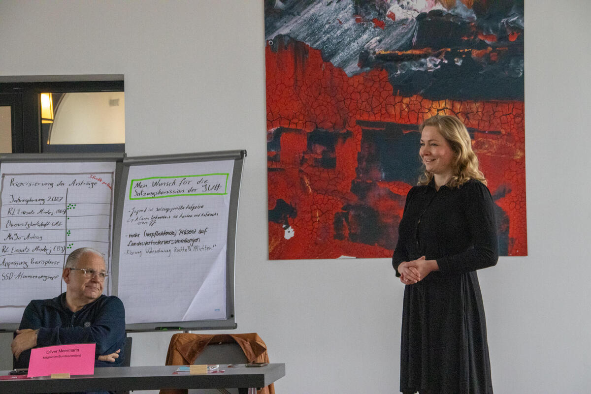 Dann ging es noch mit einigen Berichten weiter. Neben der Summer School, welche dieses Jahr in der ersten Augustwoche stattfindet, berichteten die Fachausschüsse und Arbeitsgruppen auf Bundesebene. Anschließend berichtete Christiane Ziervogel, Stabsbereichsleiterin in der Bundesgeschäfststelle, über die neue Struktur der Bundeskonferenzen und Bundesvorstandskonferenz und stand der Versammlung dabei Rede und Antwort. Nach dem Punkt Sonstiges wurde die Versammlung schließlich beendet.
