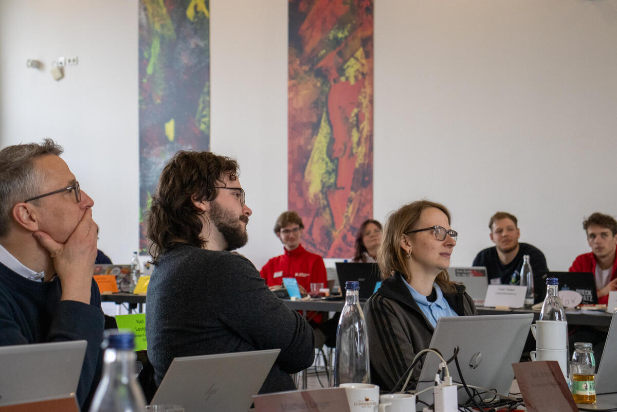 Anschließend ging es dann inhaltlich mit einigen Berichten los. Im Bericht der Bundesjugendleitung und der Bundesgeschäftsstelle klärten Jule und Yanis aus der Bundesjugendleitung über aktuelle Projektstände und Themen auf Bundesebene auf. Weiter ging es mit einem Update und ersten Ergebnissen der Umfrage zu "Miteinander Weiterdenken", einem Projekt, in dem die strategische Zusammenarbeit mit dem “Erwachsenenverband” reflektiert wird. Anschließend ging es weiter mit den Berichten vom Fachausschuss Ehrenamt und dem Deutschen Evangelischen Kirchentag, der im nächsten Jahr vom 5. bis 9. Mai 2027 in Düsseldorf stattfindet.