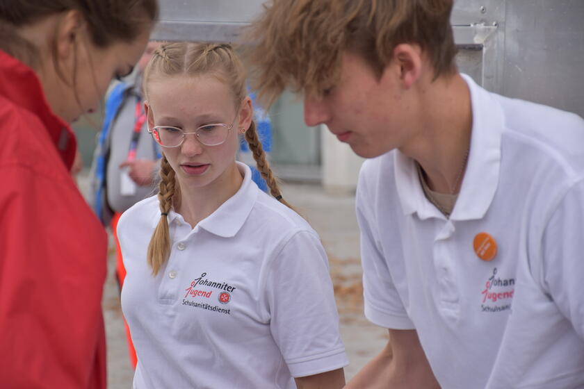 Schulsanitäter durchlaufen eine Ausbildung bei der Johanniter-Jugend und Üben das Erlernte regelmäßig in Arbeitsgemein-schaften. Ab dem 16. Lebensjahr kann ein Sanitätshelferlehrgang erfolgen. Hier lernen die Schüler den Umgang in und mit Notfallsituationen.